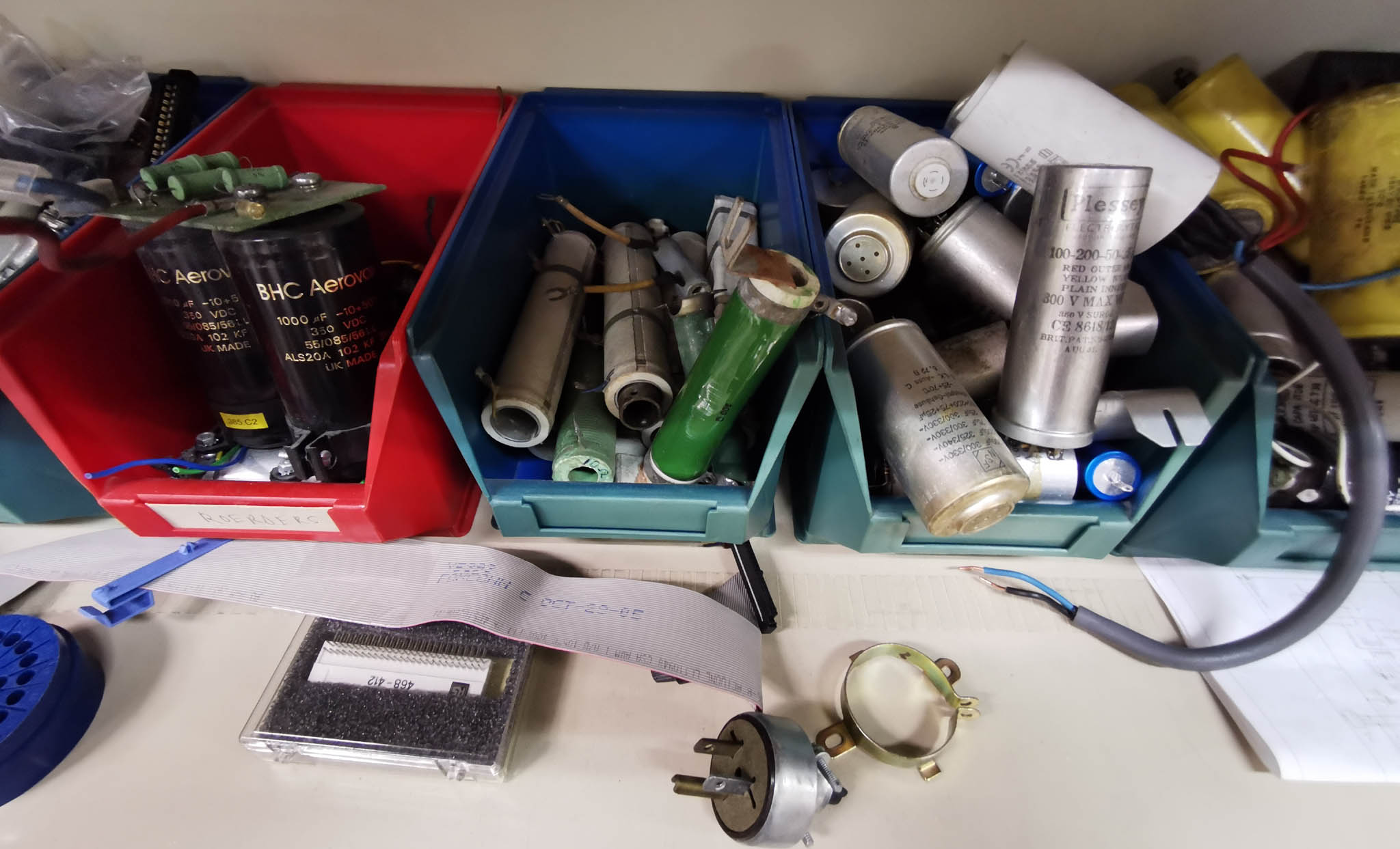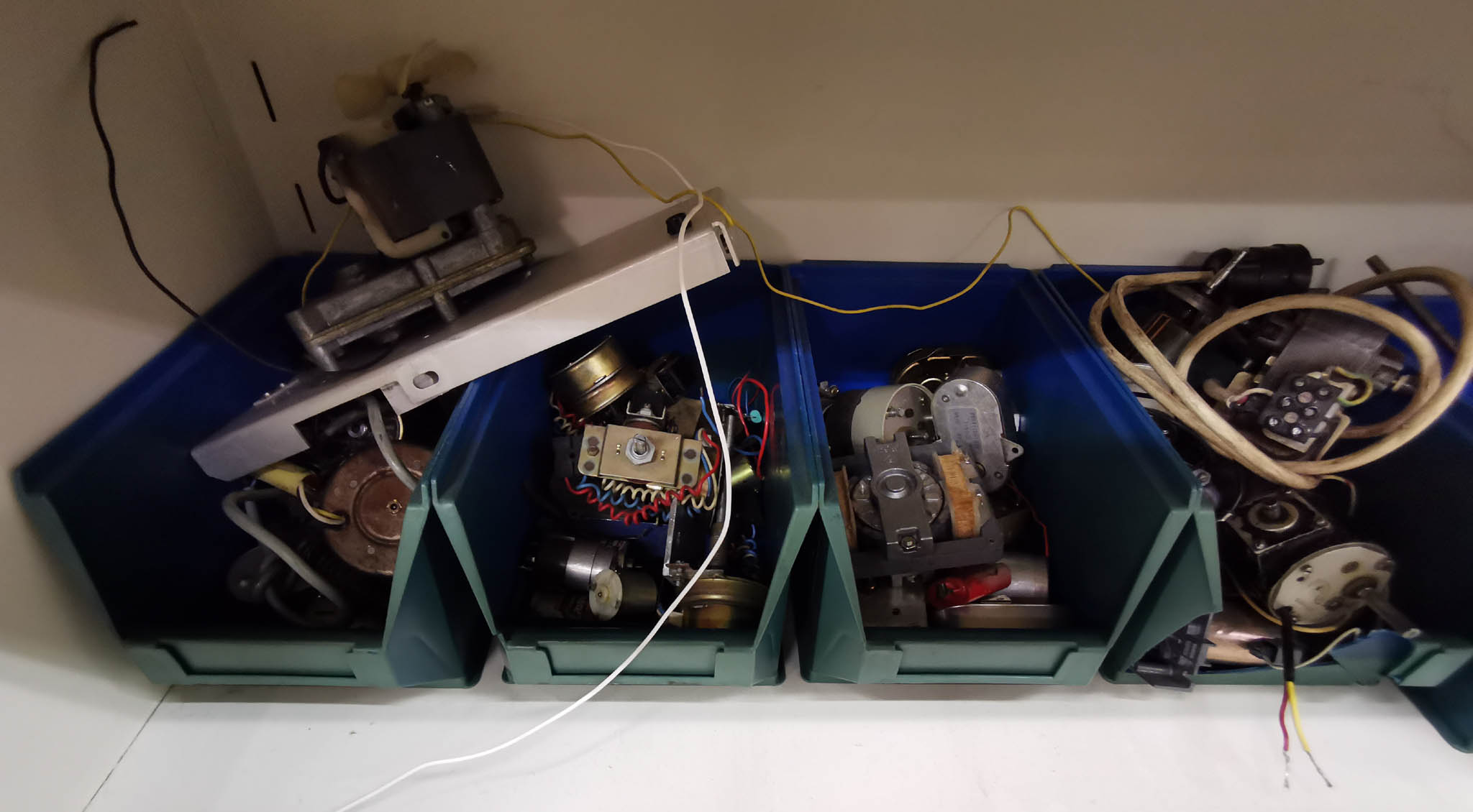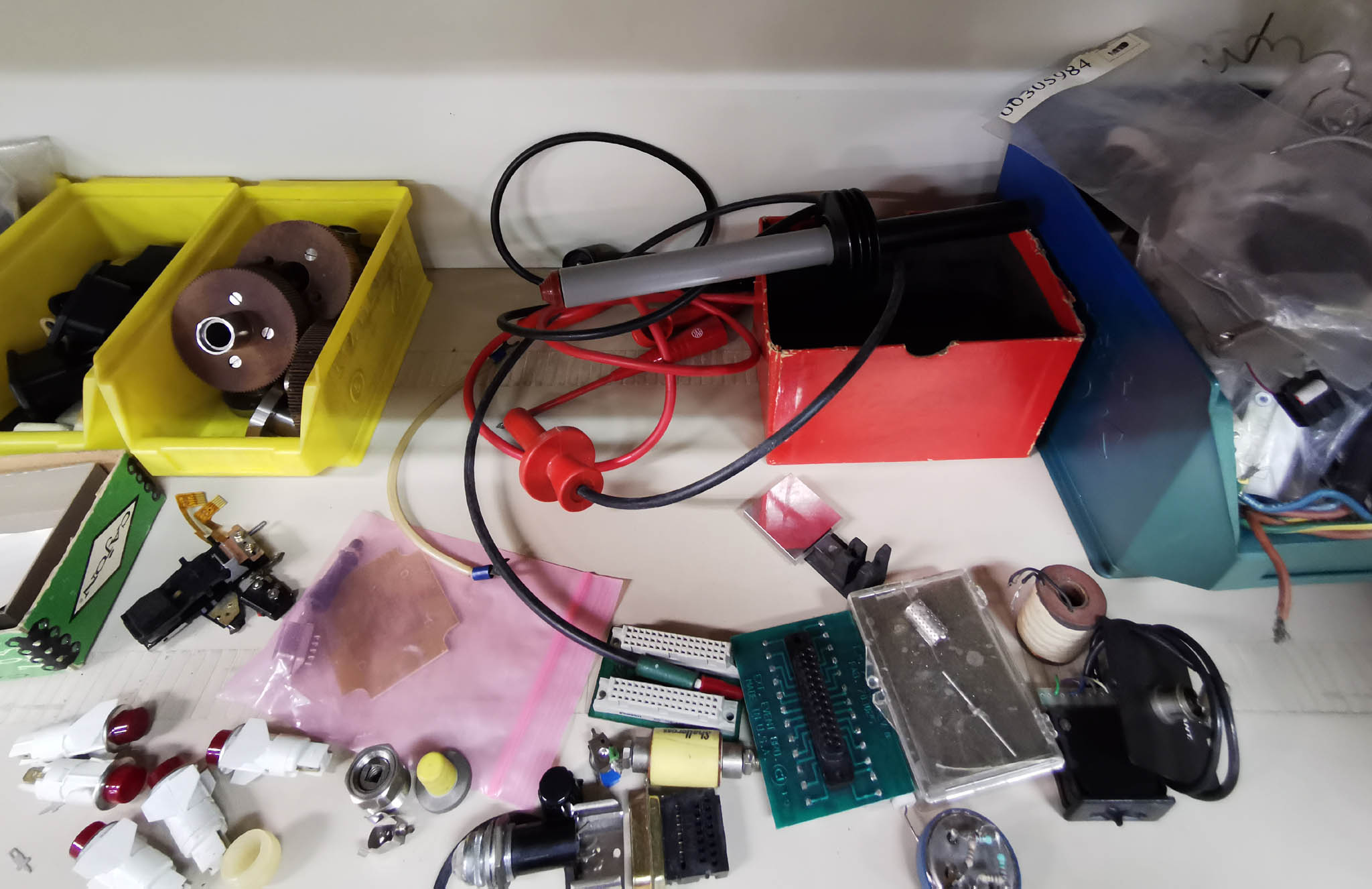 Verwijderd Elektronische en elektrische componenten en materialen(oude) meetapparaten en onderdelen van bij de vroegere werkgever, vintage materiaal bestemd om weg te geven (gooien) vanwege verhuis.De foto’s geven een idee van de inhoud van de kasten. Mocht er iets tussen zitten wat je interesseert, je weet nooit, laat dat dan maar weten. Het was de bedoeling om door de foto’s een idee te geven of het voor je de moeite zou zijn om ter plaatse te komen kijken of er iets tussen zit waar je iets mee kan doen. Maar door die Covid-19 toestanden kan dat niet meer. Mocht je toch iets herkennen wat je wil hebben geef me dan een mailbericht en als ik daar zelf nog eens langs ga dan kan ik het meebrengen. Als dat ding er dan nog is natuurlijk. Tegenwoordig houden ze daar zelf elke woensdagmiddag een opruim ronde en zien ze wat ze op die tijd in de containers weggegooid krijgen. Er staat wel heel veel, buiten de foto’s staat er nog vele malen meer mechanisch materiaal, ze zijn dus nog wel even bezig. |